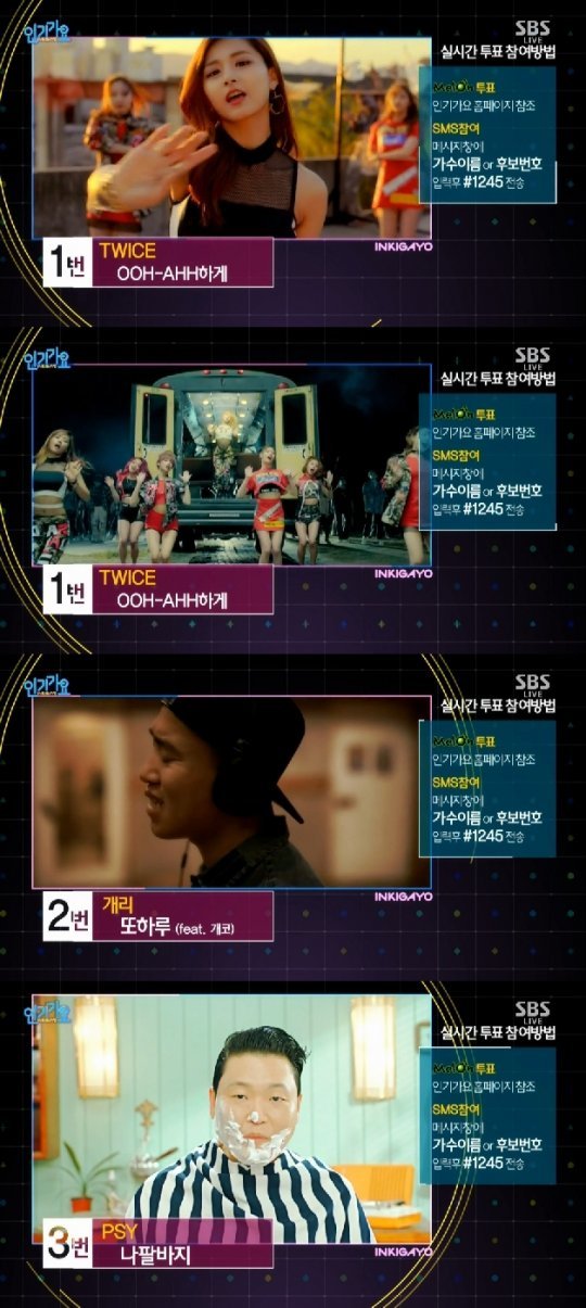 ‘인기가요’ 트와이스, 1위 후보 올라…개리·싸이와 경쟁