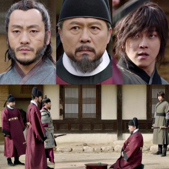공개된 사진 속 이성계는 갑옷이 아닌, 관복을 차려 입은 채 바닥에 무릎을 꿇고 앉아 있다. 그의 곁에는 작은 상 하나가 있으며, 그 위에는 정체 불명의 작은 잔 하나가 놓여 있다. 한 발자국 다 나아가면 우왕(이현배 분)의 명을 받고 온 신하들이 나란히 서서, 매서운 표정으로 이성계를 바라보고 있다.