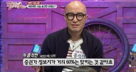 이에 대해 홍석천은 "증권가 정보지가 적어로 6~70% 정도는 맞는 것 같다"면서 조심스럽게 신뢰감을 드러냈다.