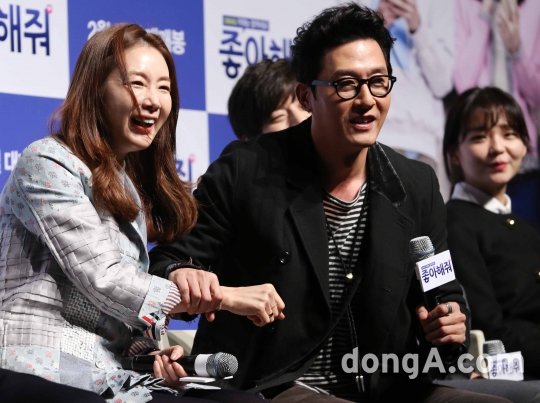 김주혁은 12일 서울 압구정 CGV에서 열린 영화 ‘좋아해줘’ 제작보고회에서 최지우에 대해 “허당끼가 많은 배우”라고 말했다. 이어 “백치미도 갖고 있는데 그것이 정말 매력이다. 그리고 그냥 예쁘다”라고 밝혔다.