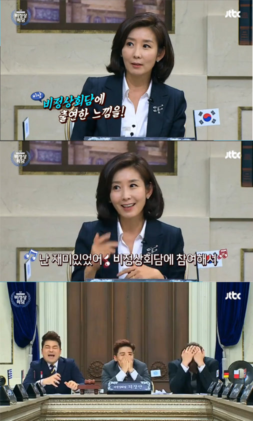 11일 오후 방송된 JTBC ‘비정상회담’에서 나경원 새누리당 의원이 랩 개인기를 선보였다.