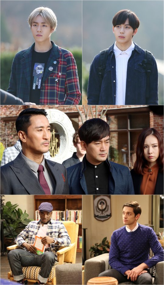 12일 ‘무림학교’ 측은 무림 캠퍼스에 발을 들인 윤시우(이현우), 왕치앙(이홍빈)과 이들을 경계하듯 탐색하는 총장 황무송(신현준)을 비롯한 교수들의 사진을 공개했다.