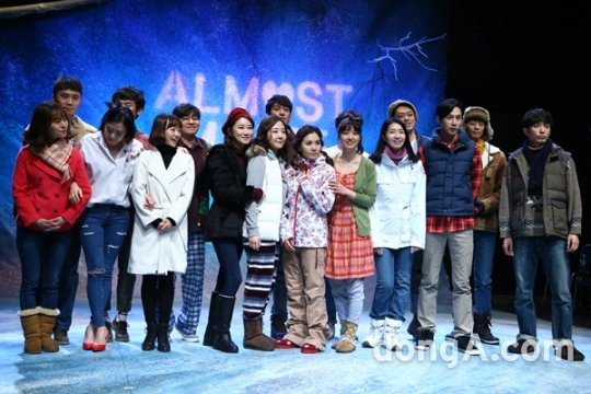배우 윤나무, 정연, 주민진, 노수산나, 오의식, 강연정, 성열석, 정선아, 강기둥, 박성훈, 신의정, 이지해, 정순원, 임철수 등이 12일 오후 서울 종로구 상명아트홀에서 열린 연극 ‘올모스트 메인’ 프레스콜에서 포토타임을 하고 있다.