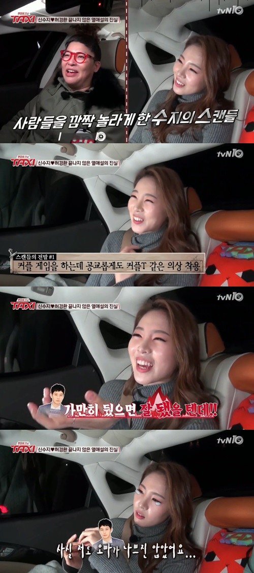 12일 방송된 tvN '현장토크쇼 택시'에서 신수지가 허경환과 사귀지 않았다고 말했다.