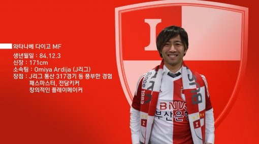 프로축구 K리그 챌린지 부산아이파크가 노련한 플레이메이커 자원을 일본에서 확보했다. 그 주인공은 일본 J리그 오미야 아르디자 소속의 와타나베 다이고(31)다.