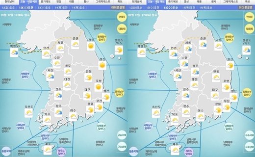 전국 날씨는 아침 최저기온은 영하 11도에서 영상 3도, 낮 최고기온은 0도에서 6도가 되겠다.