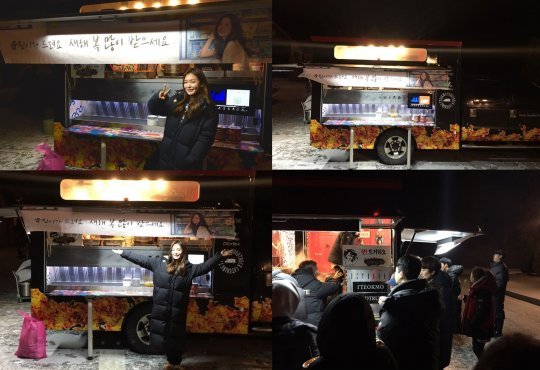 한 관계자는 “소박하지만 추운 날씨 야외촬영에 고생하는 스태프들에게 고마운 마음을 전하고 싶어 이렇게 간식차를 마련하게 됐다”며 “첫 액션연기에 도전한 정유진은 열심히 촬영에 임하고 있다"고 말했다.