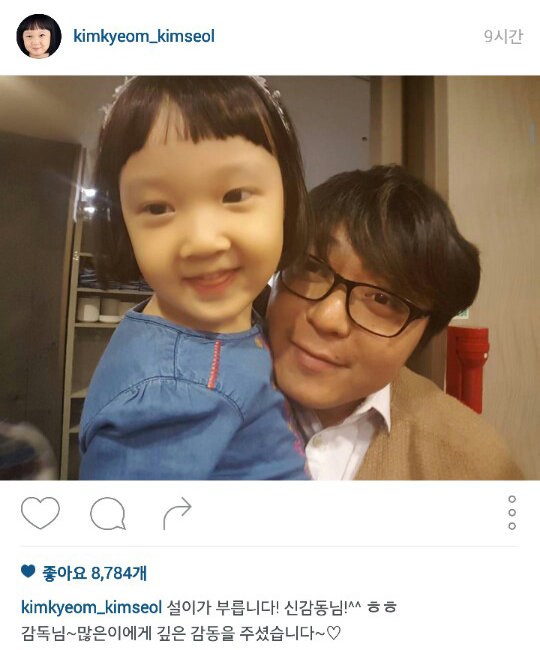 18일 아역배우 김설 부모가 운영하는 인스타그램에는 “설이가 부릅니다! 신감동님!”이라는 글과 함께 한장의 사진이 게재되었다.