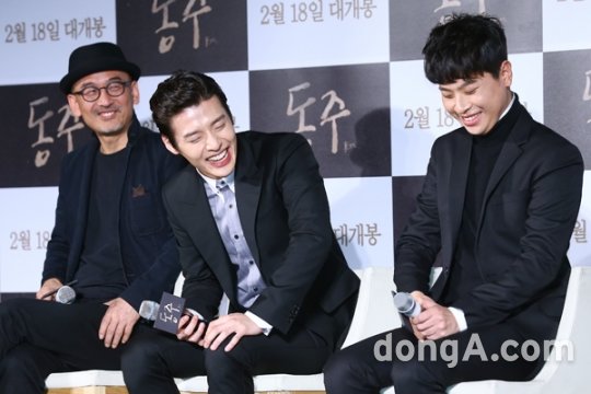 이준익 감독(왼쪽), 배우 강하늘, 박정민이 18일 오전 서울 중구 동대문 메가박스에서 열린 영화 ‘동주’ 제작발표회에 참석해 기자간담회를 하고 있다.