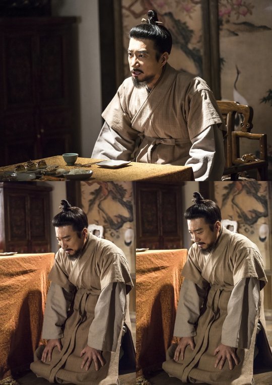 더욱 시선을 잡아 끄는 것은 무릎을 꿇은 정도전의 모습이다. 앉아 있던 의자에서 벗어나 바닥에 털썩 무릎 꿇고 앉은 정도전은 고개까지 숙인 모습이다. 질끈 감은 눈에서는 금방이라도 눈물이 쏟아질 듯 격정적이다. 무릎을 꼭 쥔 두 손에는 정도전 마음 속 절실함이 오롯이 담겨있다.