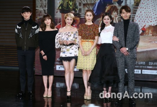 배우 권율, 유다인, 서인영, 유인나, 장나라, 정경호가 18일 오후 서울 마포구 상암MBC에서 열린 새 수목드라마 ‘한 번 더 해피엔딩’ 제작발표회에 참석해 포토타임을 하고 있다.