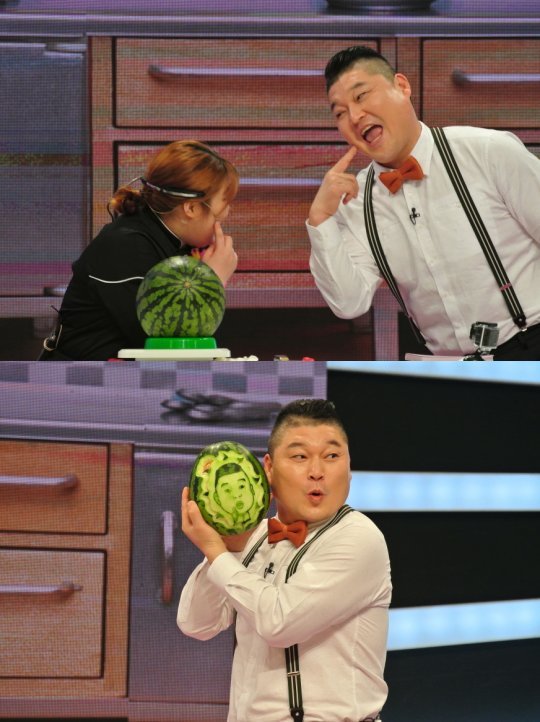 각종 채소와 과일에 글씨, 인물 카빙을 선보인 출연자는 MC 강호동의 얼굴을 수박에 그려내 놀라움을 자아냈다. 강호동은 감탄을 극치 못하며 완성된 작품을 들어 보였는데 오히려 수박보다 더 큰 얼굴 크기로 주목을 끌었다. 스타 판정단은 “강호동씨 얼굴 밖에 안 보인다”며 황당해했다.