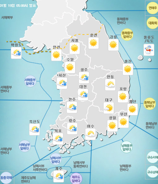 또한 중부지방과 경북을 중심으로 한파특보가 발효중인 가운데바람이 강하게 불어 체감온도가 낮아 매우 춥겠으니 건강관리에도 유의하기 바란다고 덧붙였다.