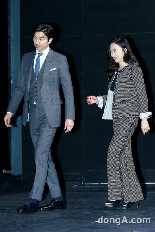 배우 공유(왼쪽), 전도연이 19일 오전 서울 강남구 압구정CGV에서 열린 영화 ‘남과 여’제작보고회에 참석하고 있다.