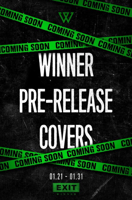 20일 오후 6시 YG공식블로그(www.yg-life.com)에는 ‘WINNER - ‘EXIT : E’ PRE-RELEASE COVERS’ 라는 타이틀의 티저 포스터 한 장이 게재됐다. 포스터에는 ‘WINNER PRE-RELEASE COVERS’ 그리고 ‘COMING SOON’ 이라고 적혀 있으며 ’01.21 -01.31’이라는 구체적인 날짜가 적혀 있어 눈길을 끌었다.