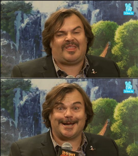 잭 블랙은 20일 오후 네이버 V앱을 통해 생중계된 영화 ‘쿵푸팬더3’ 잭 블랙 내한 무비토크에서 “포를 흉내내 달라”는 누리꾼의 요청에 표정 묘사에 도전했다.