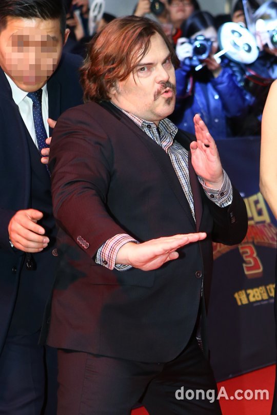 잭 블랙은 20일 오후 서울 영등포구 타임스퀘어에서 진행된 ‘쿵푸팬더3’ 내한 레드카펫에서 “우리를 초대해 줘서 감사하다”고 말했다.