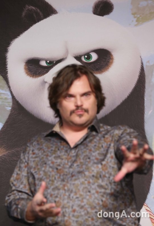 할리우드 배우 잭 블랙이 20일 오전 서울 영등포구 콘래드호텔에서 열린 영화 ‘쿵푸팬더3’ 기자회견에 참석해 포토타임을 하고 있다.