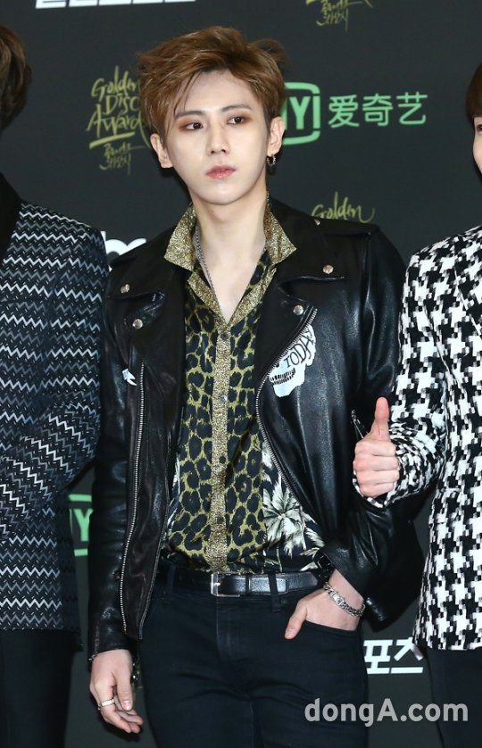 비스트의 멤버 장현승이 21일 오후 서울 동대문구 경희대학교 평화의 전당에서 열린 ‘골든디스크 시상식’에 참석해 포토타임을 하고 있다.