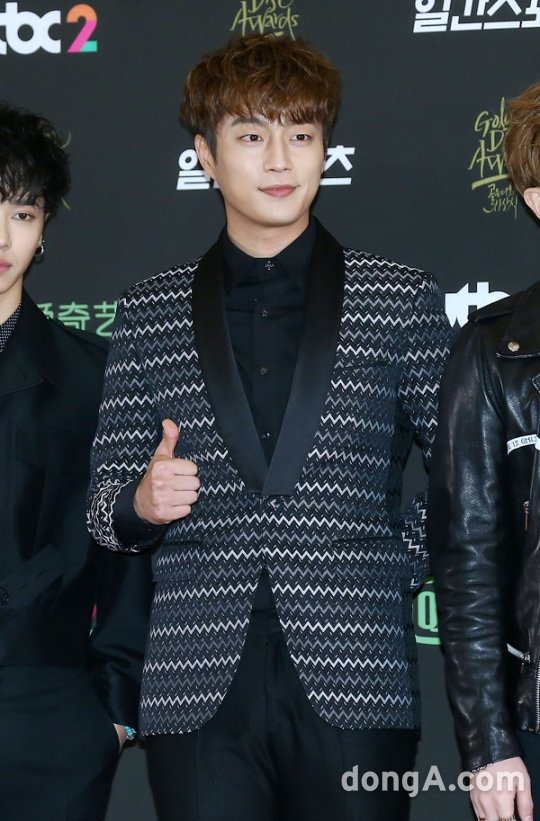 비스트의 멤버 윤두준이 21일 오후 서울 동대문구 경희대학교 평화의 전당에서 열린 ‘골든디스크 시상식’에 참석해 포토타임을 하고 있다.