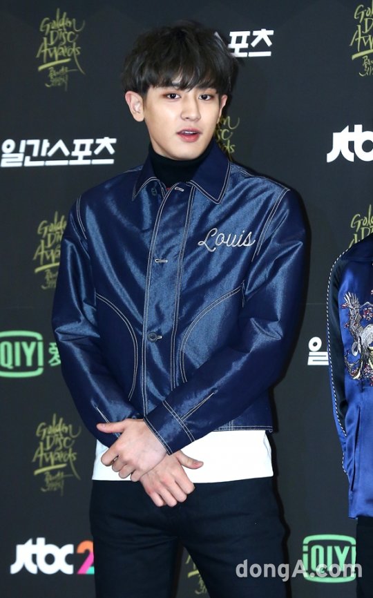 엑소의 멤버 찬열이 21일 오후 서울 동대문구 경희대학교 평화의 전당에서 열린 ‘골든디스크 시상식’에 참석해 포토타임을 하고 있다.