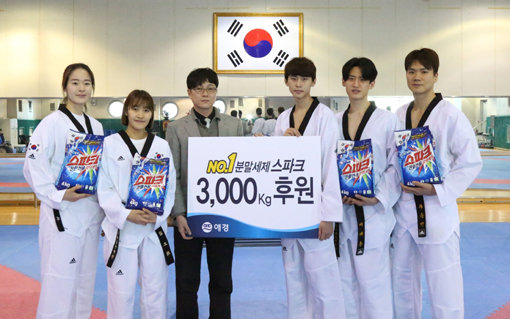 생활뷰티기업 애경의 친환경 세탁세제 브랜드 스파크가 20일 서울 노원구 태릉선수촌에서 태권도 국가대표선수들을 응원하기 위한 ‘대한민국 대표 스포츠 태권도 국가대표의 깨끗한 흰색 도복을 책임집니다’라는 행사를 개최했다. 이날 행사에는 김태훈, 이대훈, 차동민, 김소희, 오혜리 등 태권도 국가대표선수들이 참석했다. 애경 스파크는 스파크 3000kg을 지원했다. 이는 도복 약 50만벌 이상을 세탁할 수 있는 분량으로 올림픽 때까지 매일 사용해도 충분한 양이다. 애경 스파크는 지난해 4월 대한태권도협회와 상호협력 업무조약을 체결한 이후 태권도 종목을 공식후원하고 있다. 7월에는 제45회 대한태권도협회장기 전국태권도선수권대회를 후원했다.