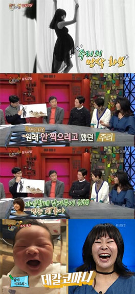 정주리는 21일 오후 방송된 KBS2 ‘해피투게더3’에 출연. 자신의 임신과 육아에 관련해 재치있는 입담을 뽐냈다.