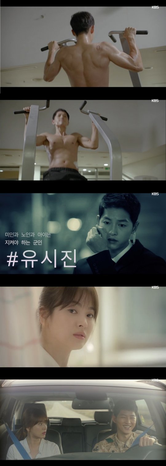 예고 속에는 ‘그남자’ 유시진 대위 역의 송중기 이야기를 담았다.
