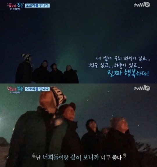 22일 오후 방송된 tvN ‘꽃보다 청춘 아이슬란드’ 4화에서 드디어 오로라를 목격한 정우는 “좀 더 어두운 곳에서 보자”고 제안했다.