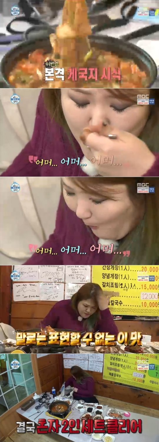 이국주는 22일 방송된 MBC 예능 프로그램 ‘나 혼자 산다’에서 홀로 안면도 여행을 떠났다. 스파 펜션에 짐을 정리한 후 식당을 찾아 게국지 2인 세트를 주문했다.