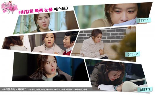 ‘화려한 유혹’ 최강희가 매회 눈물 열전을 펼치며 ‘눈물의 여왕’으로 등극했다.