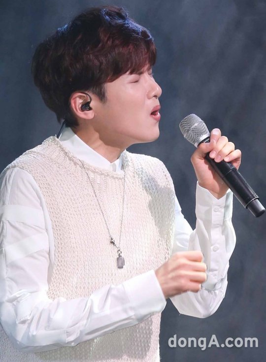 려욱이 24일 오후 서울 용산구 이태원 현대카드 언더스테이지에서 열린 첫 미니앨범 ‘어린왕자’ 발매 기념 쇼케이스에서 신곡 무대를 선보이고 있다.