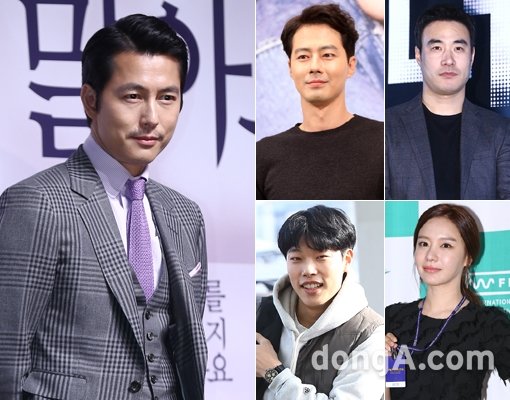 배우 정우성-조인성-배성우-김아중-류준열(맨 왼쪽부터 시계방향으로). 동아닷컴DB