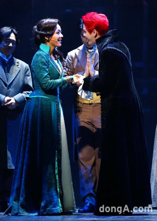 JYJ의 멤버 김준수와 배우 임혜영이 26일 오후 서울시 종로구 세종문화회관에서 열린 뮤지컬 ‘드라큘라’ 프레스콜 무대에서 시연을 하고 있다.