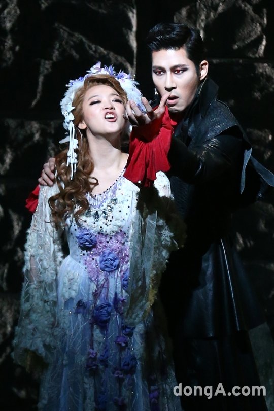 배우 이예은(왼쪽) 박은석이 26일 오후 서울시 종로구 세종문화회관에서 열린 뮤지컬 ‘드라큘라’ 프레스콜 무대에서 시연을 하고 있다.