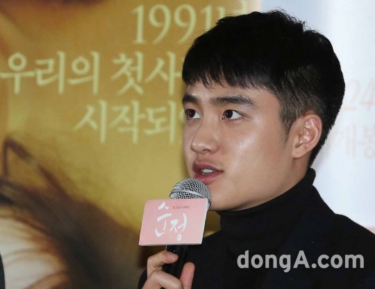도경수는 26일 오후 서울 성동구 행당동 CGV 왕십리에서 열린 영화 ‘순정’ 제작보고회에서 “시나리오를 보면서 우산 키스신을 두고 ‘어떻게 표현해야 부담스럽지 않을까’ 싶어서 많이 연구했다”고 말했다.