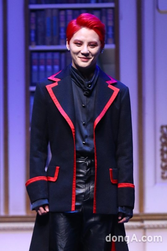 JYJ의 멤버 김준수가 26일 오후 서울시 종로구 세종문화회관에서 열린 뮤지컬 ‘드라큘라’ 프레스콜에 참석해 포토타임을 하고 있다.