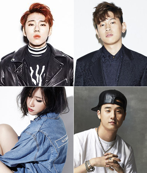 가수 지코-크러쉬-베이식-예지(왼쪽 상단부터 시계방향으로). 사진제공|세븐시즌스·아메바걸쳐·RBW·로엔트리