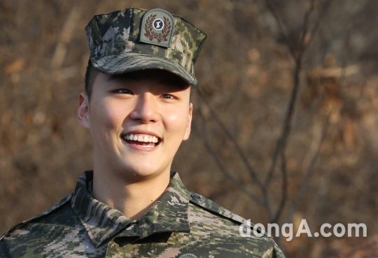 배우 윤시윤이 27일 오전 경기 인천 해병대 2사단에서 군생활을 마친 뒤 밝게 미소를 짓고 있다.