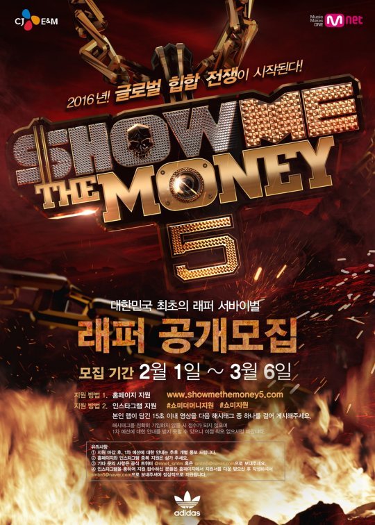 올해로 시즌5를 맞은 '쇼미더머니'는 국내 최초 힙합 서바이벌로 지난해 방송한 시즌4에서는 우승자인 베이식을 비롯해 송민호, 블랙넛, 이노베이터, 릴보이 등 출연 래퍼들이 큰 화제를 불러 일으키며 힙합 음악의 대중적 인기를 끌어올렸다.