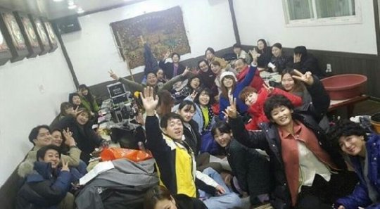 공개된 사진에는 김선영이 뽀글머리 가발을 쓰고 두 팔을 치켜든 채 V자를 그리고 있다. 김선영의 옆에는 '응팔' 쌍문동 식구들이 다양한 포즈를 취하며 기념사진에 응했다.