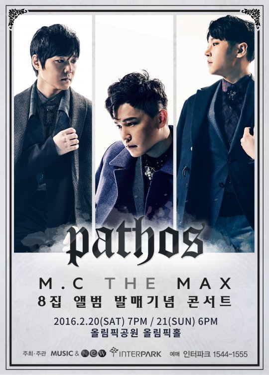 2년 만에 완전체로 돌아오는 ‘라이브의 절대강자’ 엠씨더맥스는 지난 8일에 ‘파토스’ 티켓 예매를 시작함과 동시에 순식간에 예매율 1위에 등극하며, 인터파크 콘서트 주간 예매순위 1위까지 차지하는 기염을 토했다. 또한, 부산 공연은 6위, 대구 공연은 8위에 랭킹되면서 강력한 티켓파워를 자랑하고 있다.