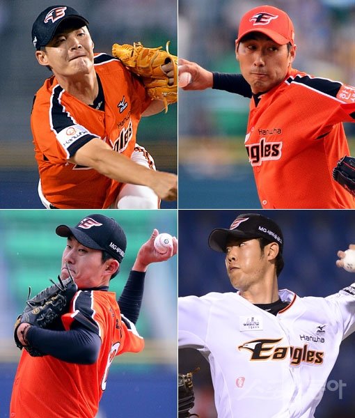 한화 정대훈-정재원-문재현-구본범(왼쪽 상단부터 시계방향으로). 스포츠동아DB