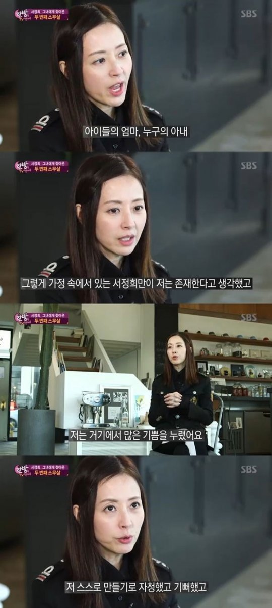 서정희는 ‘한밤’과의 인터뷰에서 “아이들의 엄마, 누구의 아내. 그렇게 가정 속에서 있는 서정희만이 존재한다고 생각했다. 그 때는 그것이 최선이었고 거기에서 많은 기쁨을 누렸다”고 말했다.