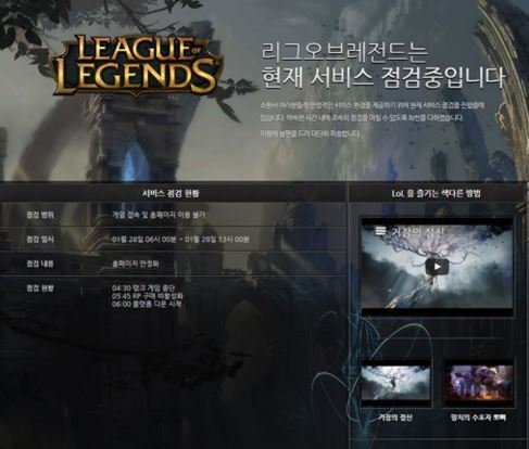 인기게임 ‘리그오브레전드(이하 롤)’ 한국 서버 업데이트에 돌입했다.