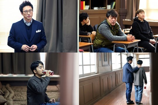 다음으로 연기 학생 이원종과 이진호는 굳은 표정을 숨기지 못하고 있고, 유병재는 연신 목이 마른 듯 음료를 마시는 모습에서 첫 촬영 당시 긴장감 넘치는 분위기를 가늠하게 한다. 특히 박신양은 유병재의 어깨에 손을 올리고 일대일 면담을 하는 듯한 모습이 포착돼 두 사제지간에 어떤 에피소드가 펼쳐질지 더욱 기대를 모은다.