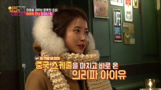 이날 손태영, 박나래, 허영지는 한 카페에서 나이가 어린 여자를 기다리며 유독 긴장하는 모습을 보였다. 그녀들이 이토록 긴장한 이유는 바로 국민 여동생 아이유 때문. '옆집의 CEO'를 찾은 아이유는 태영의 지인으로 중국 스케줄을 마치자마자 바로 시간을 내줬다.