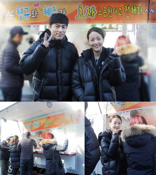 배우 오민석과 손여은이 ‘부탁해요, 엄마’ 촬영장에 간식차를 선물했다.