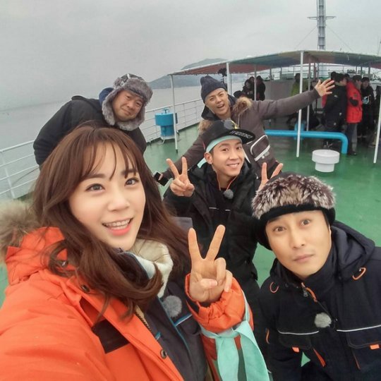 공개된 사진엔 선상에서 장난스러운 포즈를 취하고 있는 허영지, 방송인 김병만, 강남, 현주엽, 가수 브라이언이 담겼다.