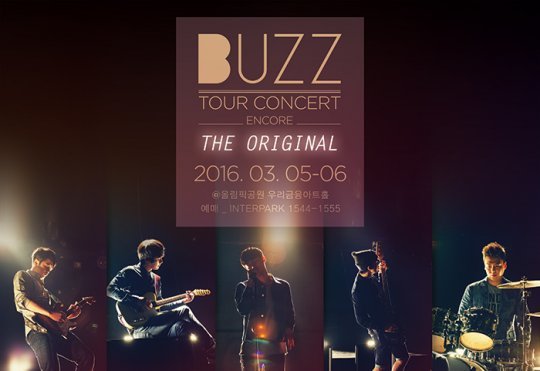 버즈 전국 투어 ‘디 오리지날'은 2월 20일 광주 김대중 컨벤션센터 다목적홀, 2월 27일, 28일 인천 문화예술회관, 3월 5일, 6일 서울 올림픽경기장 내 우리금융아트홀에서 열린다.